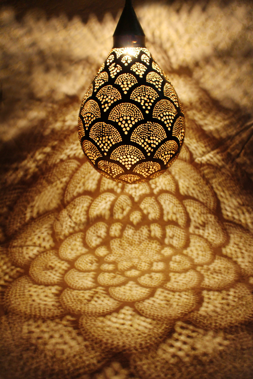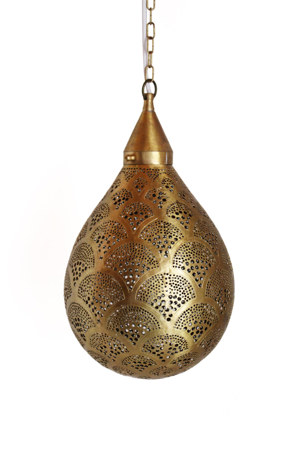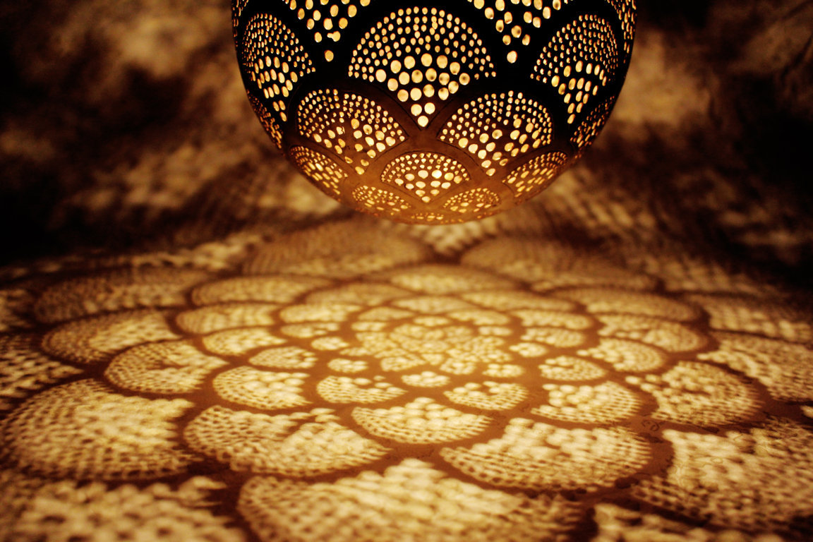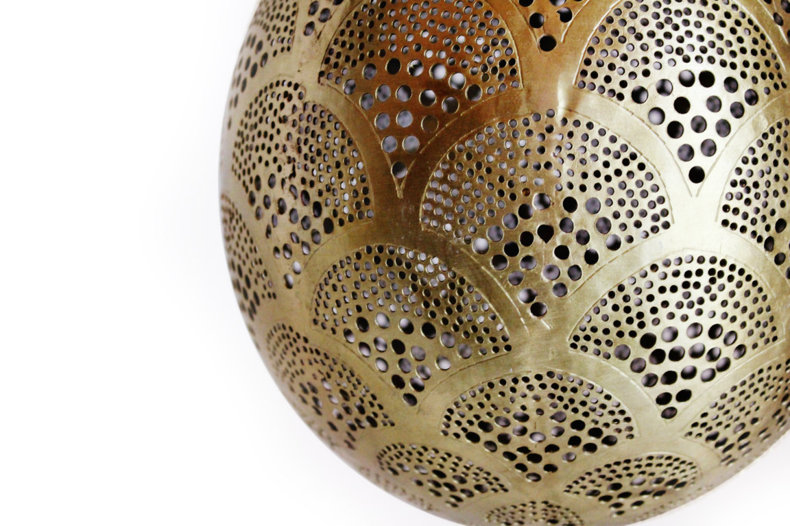 Edle marokkanische Lampe aus massiven Messing in zeitlosen eleganten Design. Diese Hängelampe passt dank ihre schlichte Eleganz zu jedem Wohnungsstil. Die goldfarbene Oberfläche des Messings wurde mit einer speziellen Patina behandelt, um einen wunderschönen Antikeffekt zu erzielen.