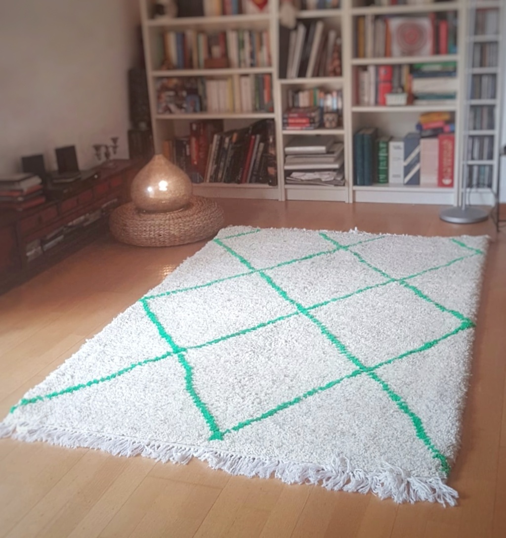 Unglaublich weich, naturrein und herrlich zeitlos, das ist der Beni Ourain Teppich aus dem Herzen des Mittleren Atlas Gebirge in Marokko. Die Beni Ourain Teppiche sind nach einem Berberstamm des nordöstlichen Atlas Gebirges. Beni ist Arabisch und bedeutet „die Kinder“ (von) «Ouarain». Die Herstellung der Teppiche obliegt dort traditionell den Frauen des Stammes und kann mehrere Monate dauern. Die Farbwelt wird in den natürlichen Farben des Schafs gehalten und reicht von hellen Beigetönen zu Elfenbeiweiss, mit schwarzen, grauen oder braunen Elementen. Typisch für einen Beni Ourain Teppich ist dazu sein geometrisches Muster, meistens in Form von Rauten oder Zickzack-Linien.
