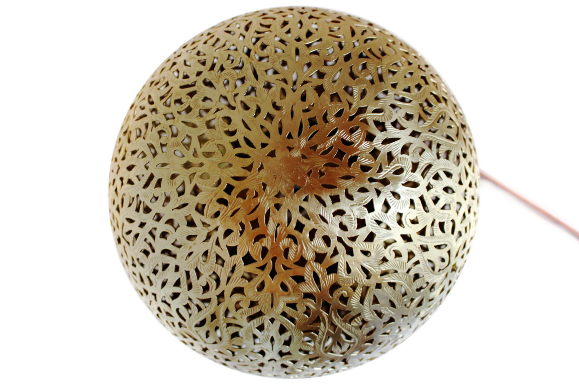 Ein Prachtstück als Stehlampe, das in reiner Handarbeit in Marokko fein geformt und hergestellt wurde. Die wunderbar filigrane Lampe wird zum Hingucker in jedem Ambiente und versprüht abends mit ihrem traditionellen Lochmuster gemütlichen Charme in jedem Zuhause.
