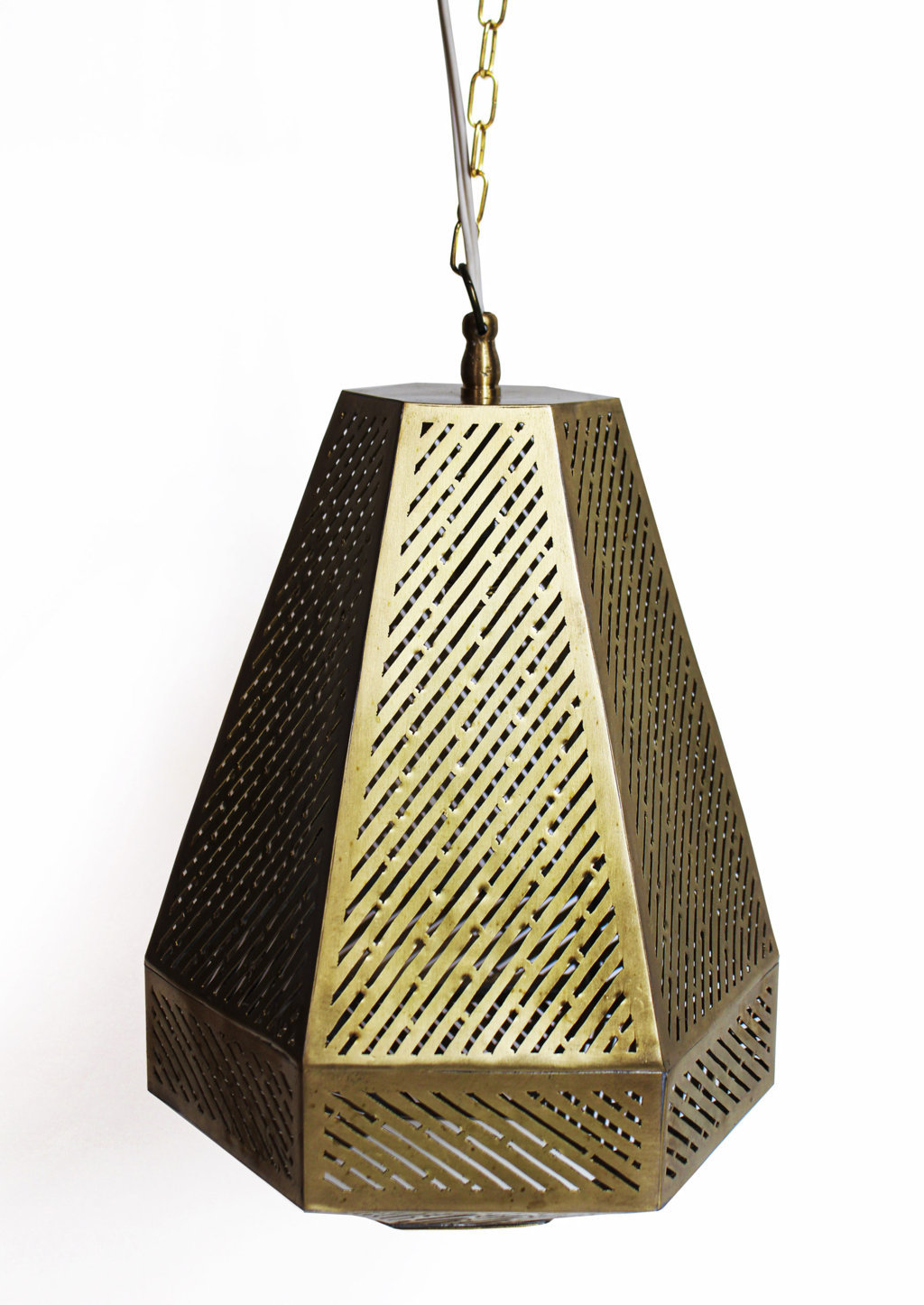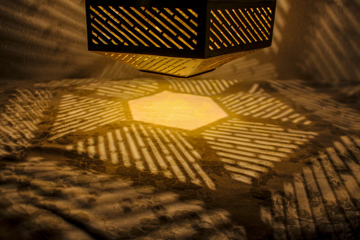 Zauberhafte Beleuchtung strahlt die Hängeleuchte Talia aus ihrem Messing Metallschirm heraus. Das Licht tritt nach unten durch die runde Öffnung heraus. Durch das handgefertigte Lochmuster, das den Metallschirm ringsum ziert, kann das Licht ebenfalls strahlen, so dass die Hängeleuchte eine wohlige und romantische Atmosphäre im Raum zaubert. Die goldfarbene Oberfläche des Messings wurde mit einer speziellen Patina behandelt, um einen wunderschönen Antikeffekt zu erzielen.